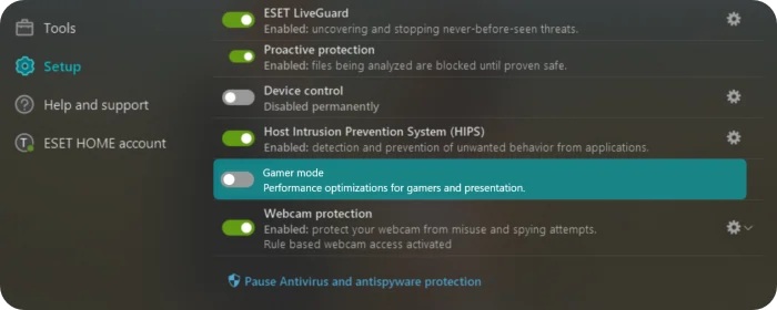 Selain itu, ESET NOD32 memiliki antarmuka yang sederhana dan mudah digunakan, serta pembaruan yang rutin untuk memastikan perlindungan terhadap ancaman terbaru. Dengan ESET NOD32, Anda dapat bermain game dengan tenang, mengetahui bahwa komputer Anda terlindungi tanpa kompromi pada kinerja.