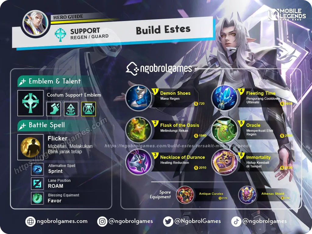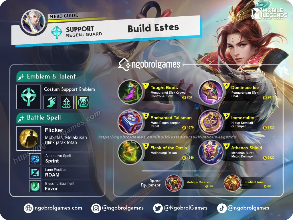 Berikut adalah Build Estes Tersakit yang sering digunakan para pro player jika ingin membuat HP teman 1 tim menjadi alot.