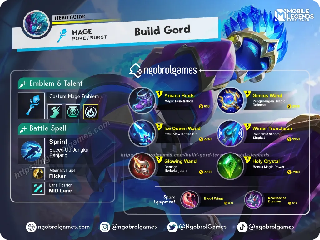 Build Gord yang sering dipakai oleh top global 1-10 teratas pada season ini. build ini menduduki peringkat teratas sebagai build Gord paling populer dan sering digunakan di mode ranked oleh pro player.