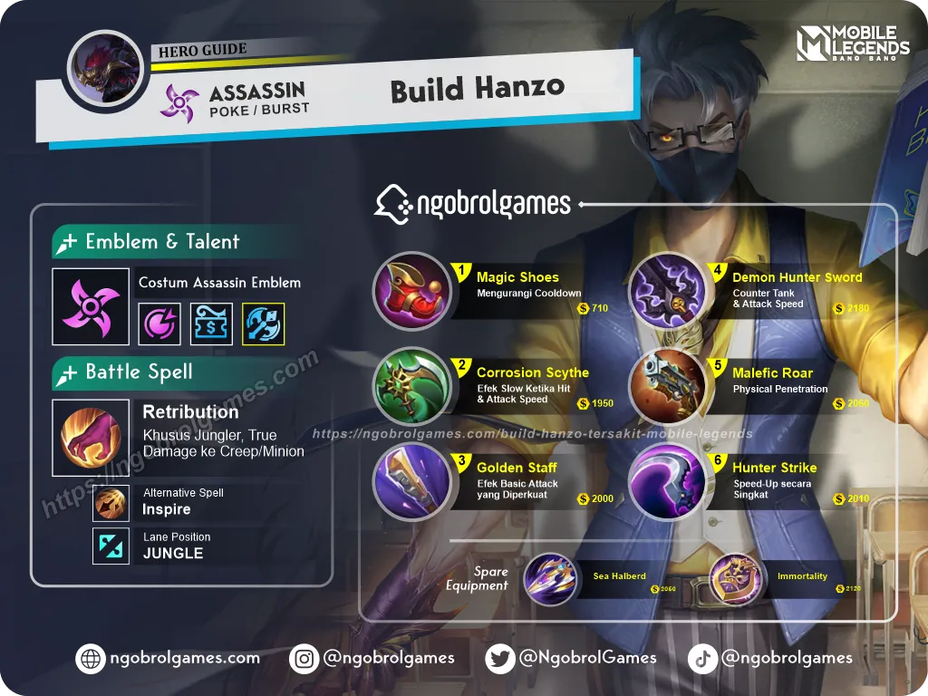 Hanzo merupakan Assasin yang sangat bergantung pada Skill nya untuk memberikan Damage, sehingga ia akan sagat tergantung dengan Build Item yang bisa membuatnya memberikan damage yang cukup besar, Berikut adalah Build Hanzo Tersakit Paling Mematikan yang bisa kalian gunakan.