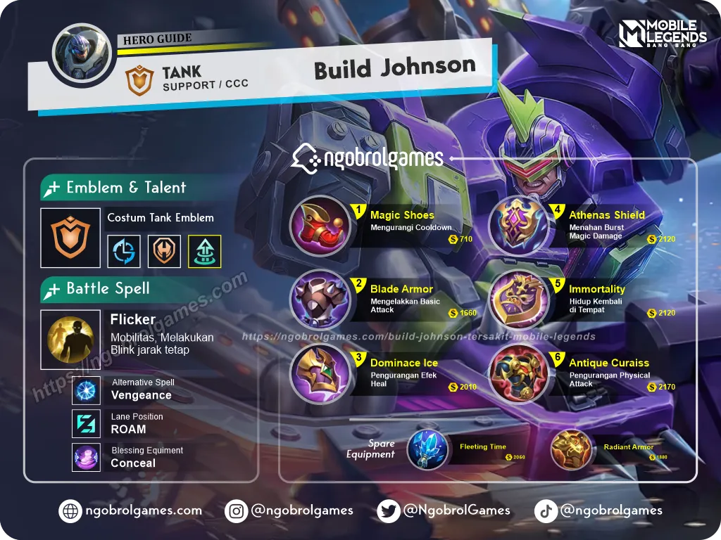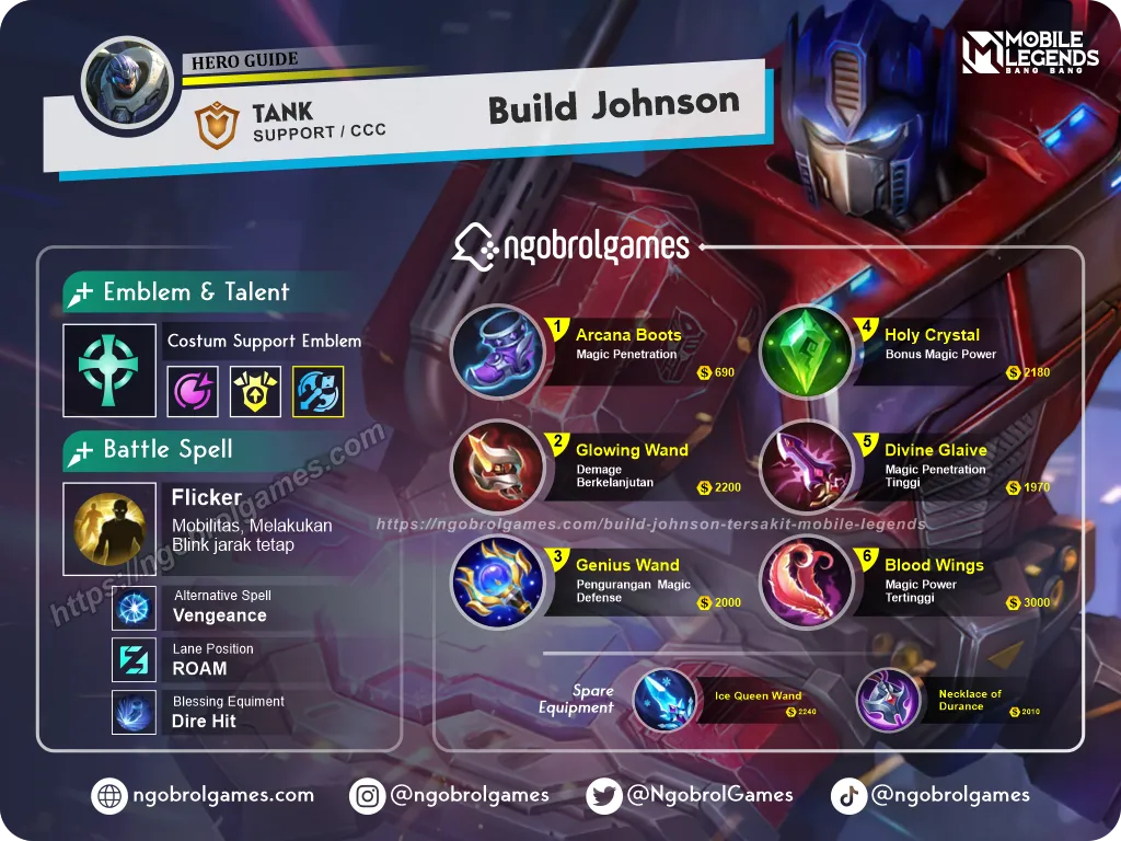Build Johnson yang sering dipakai oleh top global 1-10 teratas pada season ini. build ini menduduki peringkat teratas sebagai build Johnson paling populer dan sering digunakan di mode ranked oleh pro player.