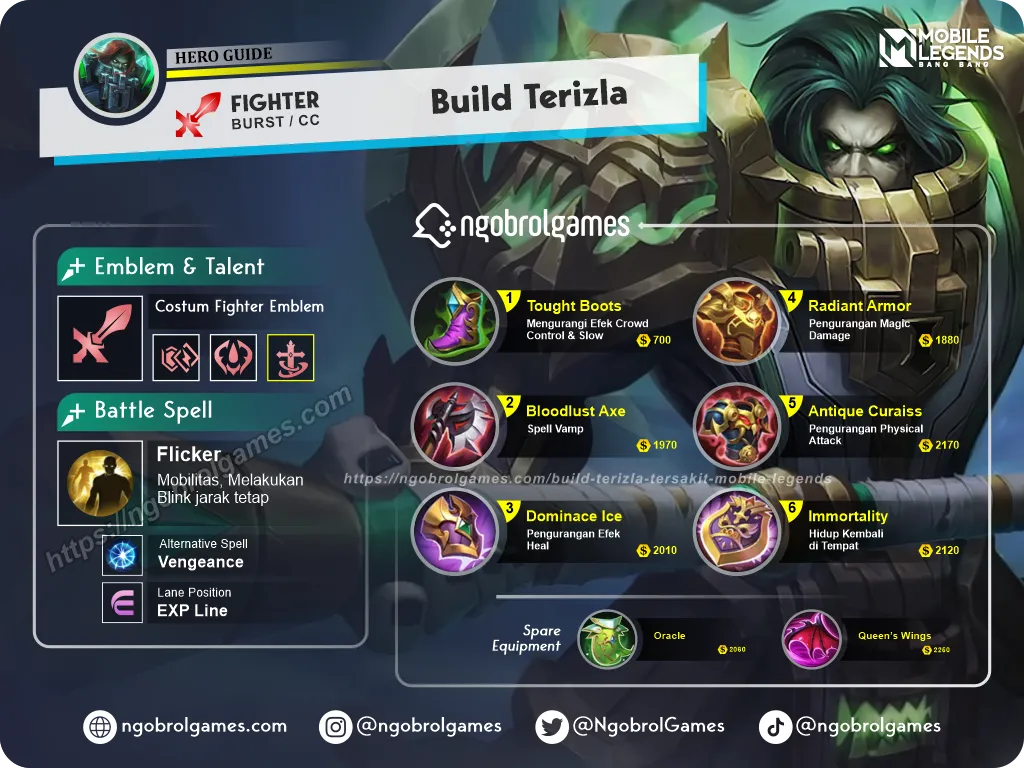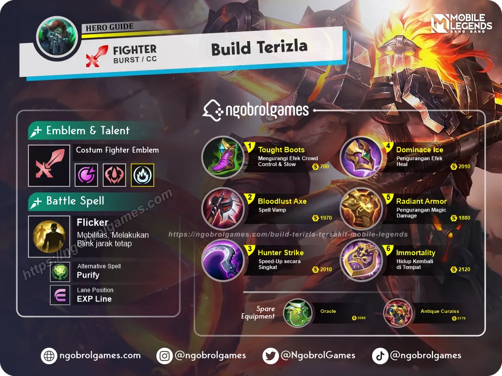 Berikut kombinasi build Terizla Tersakit Paling Mematikan yang sering digunakan oleh para Pro Player.