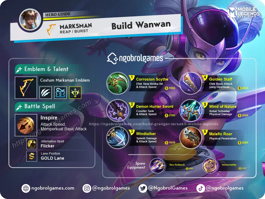 berikut merupakan build Wanwan paling standar dan populer digunakan pada season sekarang. Kombinasi ini sangat ideal, terutama untuk pemula.