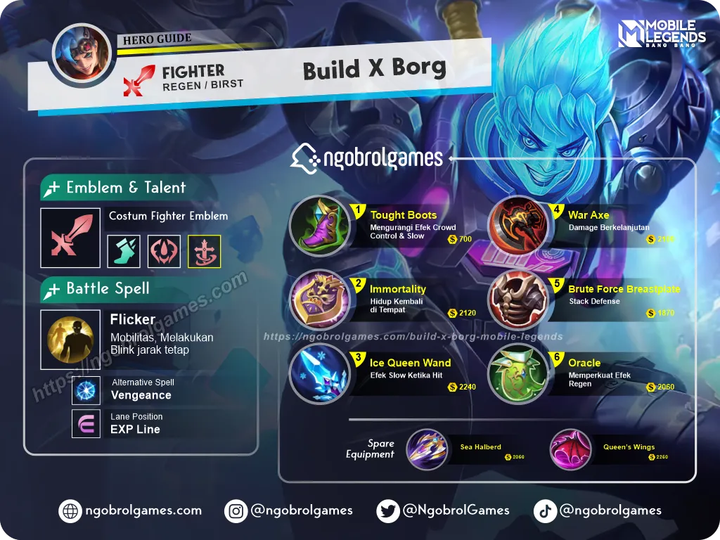 Sebagai Hero yang mengandalkan Skill pastinya hero ini akan sangat membutuhkan Build X Borg Tersakit yang bisa bersinergi dengan semua Set Skill yang ia miliki, Karena X-Borg merupakan hero Istimewa maka patutlah jika ia memiliki Build Item yang istimewa pula, Berikut adalah Build X Borg Tersakit Paling Mematikan yang sangat cocok untuk di coba.