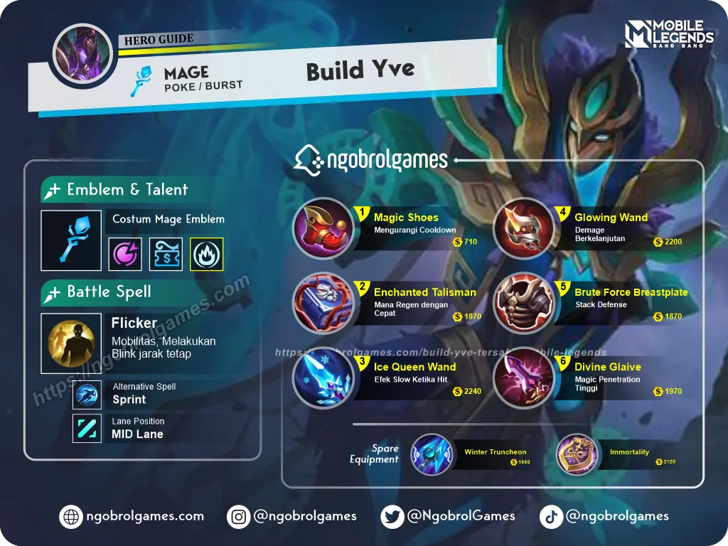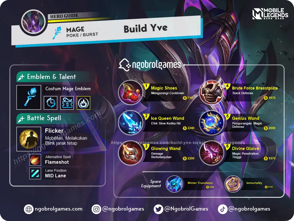 Build ini adalah build Yve dengan item magic penetration tinggi untuk kalian yang ingin mengeliminasi hero musuh dengan cepat kombo.